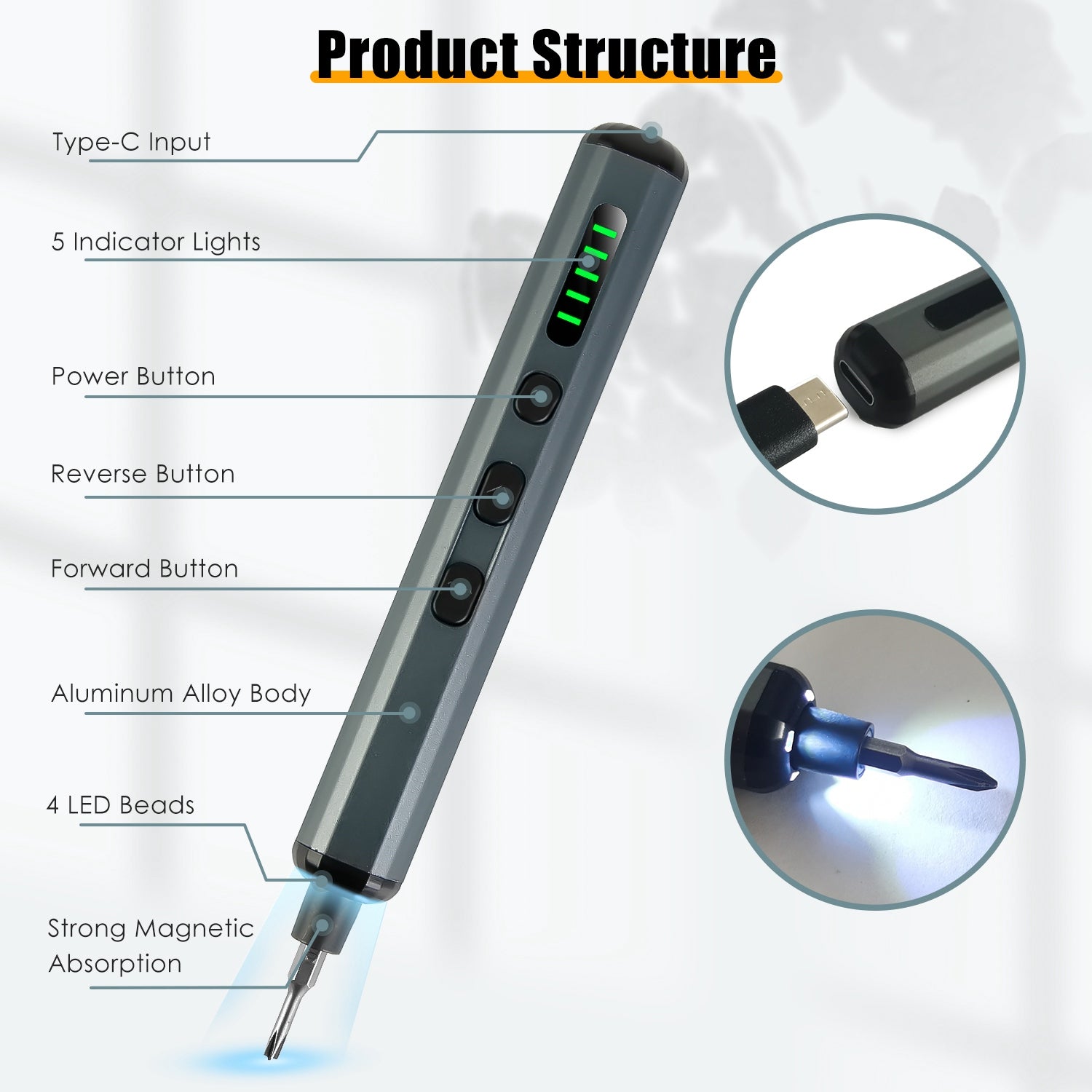 - *Forward/Reverse Function & LED Lighting*: Embedded in 4 LED beads,our cordless mini screwdriver provides excellent visibility in low-light conditions,making it perfect for small,dark spaces. Also support forward and reverse function. Perfect for light duty screw fastening or loosening into wood,plastic,light-gauge metal,some small appliances,like circuit repair,bicycle repair,electrical maintenance,switch installation,small furniture installation and more.