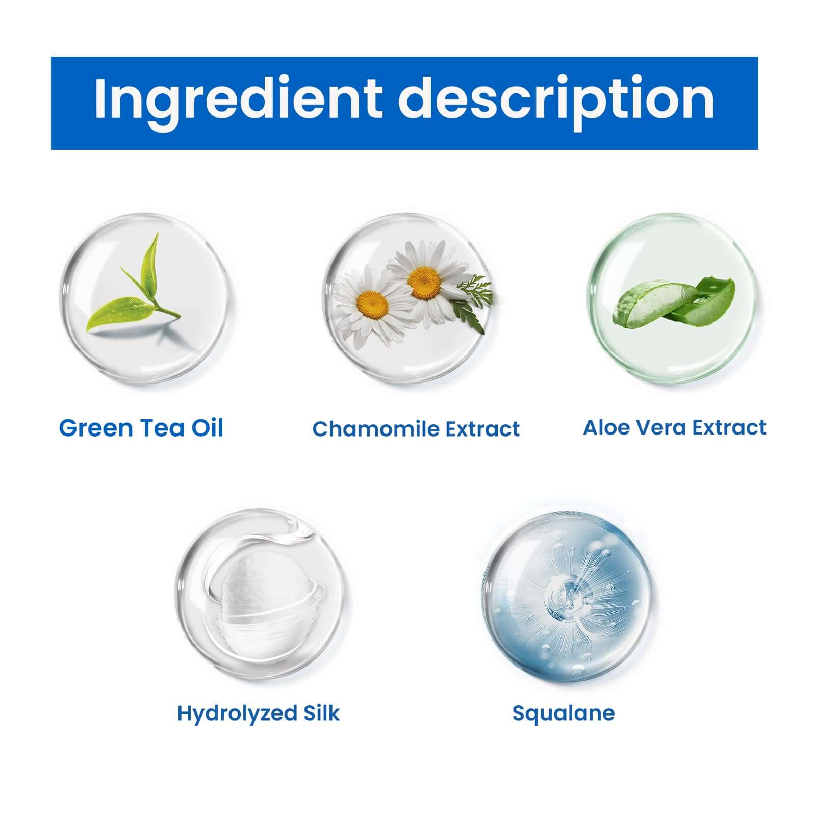 Our gentle makeup remover wipes are enriched with chamomile extract, aloe vera, and green tea oil. They effortlessly remove even waterproof makeup while remaining mild on the skin. This refreshing formula quickly lifts away dirt, excess oil, and impurities without leaving any greasy residue