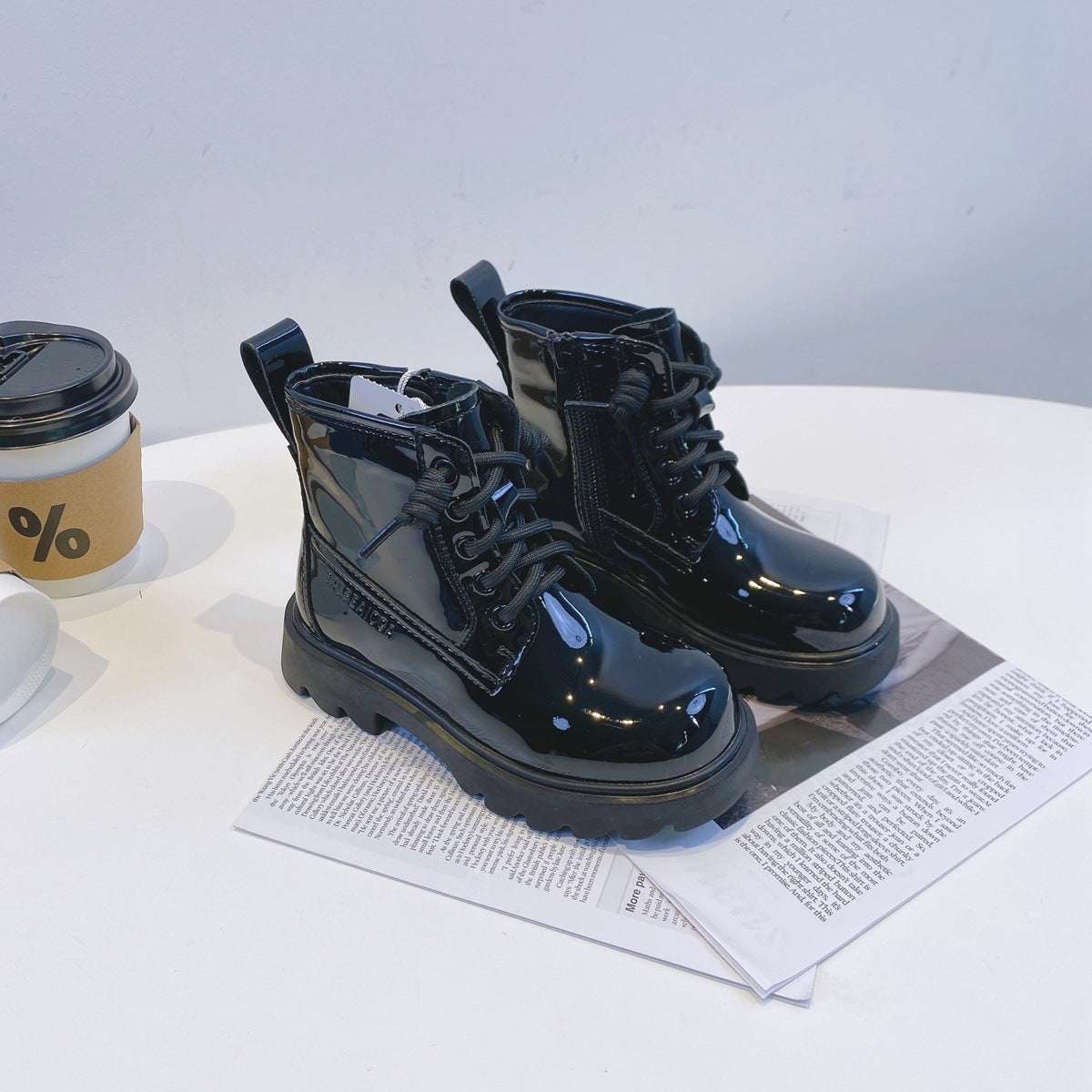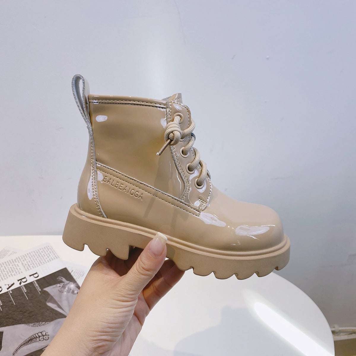 These glossy mid-thigh leather boots are designed specifically for girls, perfect for spring and autumn wear. Crafted with durable leather, they offer both style and protection against cooler weather. The mid-thigh height provides added warmth and support, making them an excellent choice for outdoor activities during transitional seasons. Their polished finish gives a sleek, fashionable look suitable for various occasions.