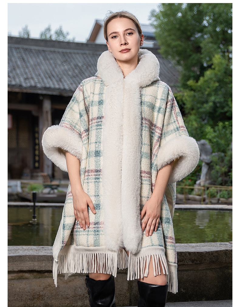 This New Hooded Warm Cloak features soft artificial plush fur, providing exceptional warmth and comfort during cold weather. Its hooded design offers added protection against wind and chill, making it an ideal shawl for outdoor use. Crafted to combine style with practicality, this cloak is perfect for layering to elevate your winter wardrobe while maintaining coziness.