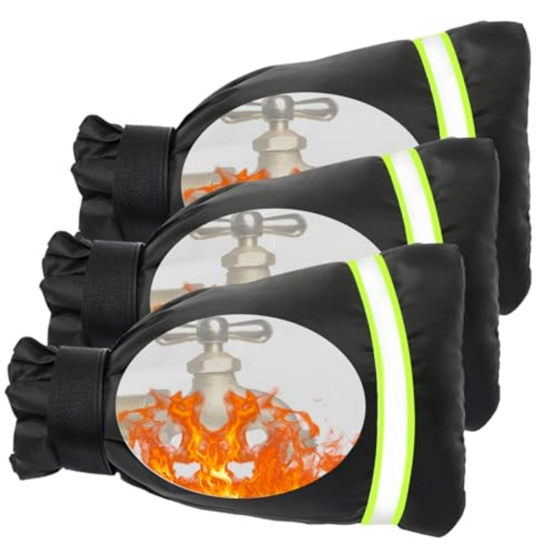 Protect your outdoor plumbing from winter damage with this three-piece faucet cover set. Each sock measures 10.24 inches high by 5.9 inches wide, providing comprehensive coverage for standard outdoor faucets. The upgraded thickened insulation material delivers superior freeze protection by trapping heat and preventing ice formation in cold climates. Reflective black fabric enhances visibility while the durable pipe wrap construction withstands harsh winter conditions. Easy to install and remove, these covers are an essential defense against costly freeze damage and burst pipes during freezing temperatures.