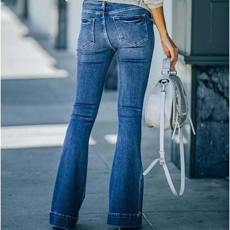 Women's Spring And Summer High Waist Temperament Slim Washed Bell-bottom Pants