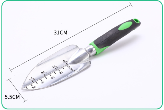This 9-piece aluminum alloy set of garden supplies features silicone two-color handle shovels and gardening tools.