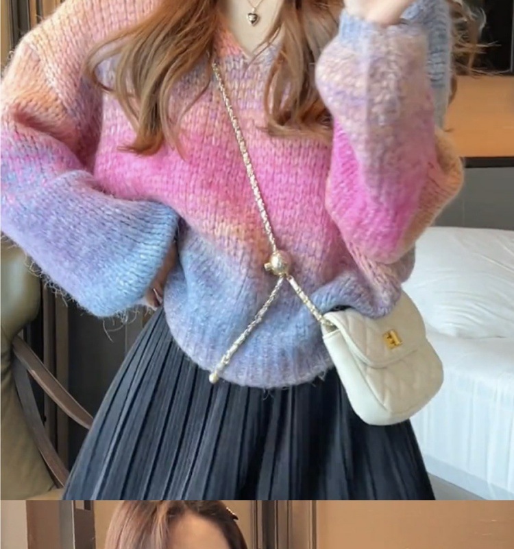 This Lazy Fashion V-neck Striped Gradient Sweater combines modern style with comfortable wearability. Its subtle gradient stripes add visual interest while maintaining a versatile look suitable for various occasions. The V-neck design enhances layering options and offers a flattering silhouette. Crafted for both elegance and ease, this sweater is ideal for elevating your casual wardrobe with a refined yet relaxed touch.