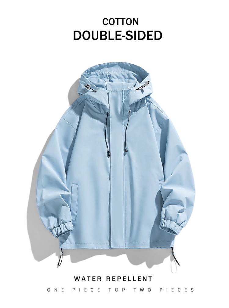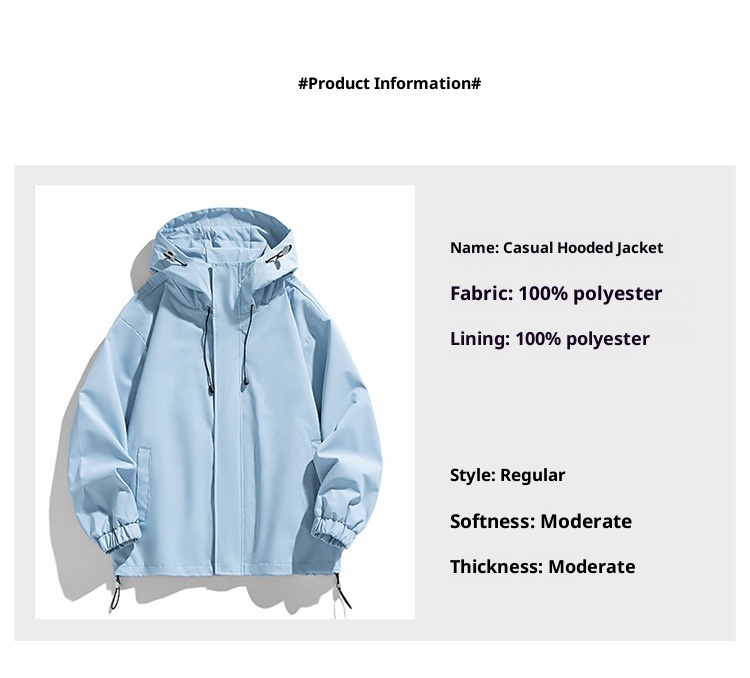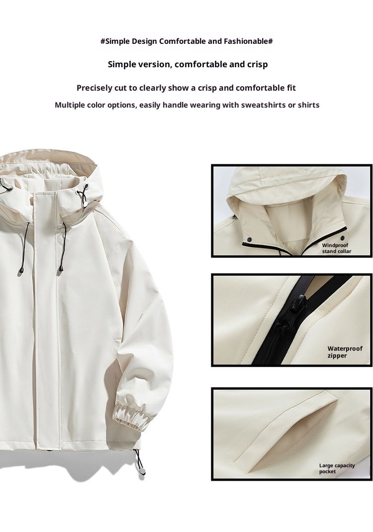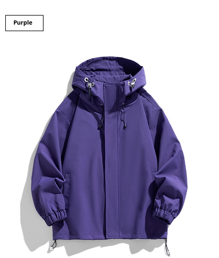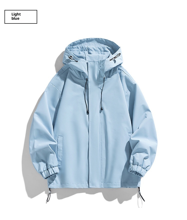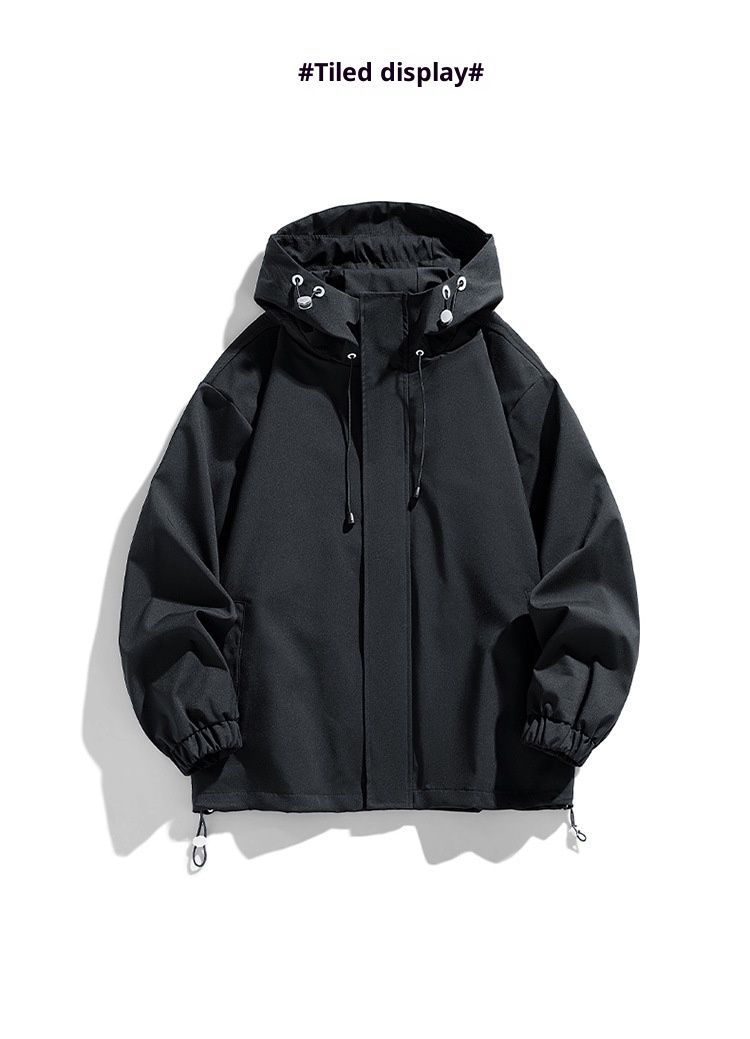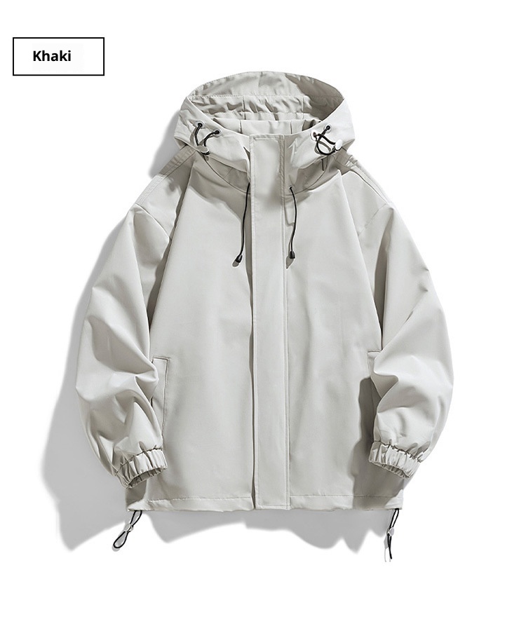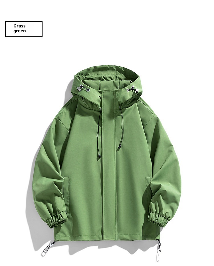Men's Sports Casual Shell Jacket Solid Color Loose Hooded Climbing Jacket