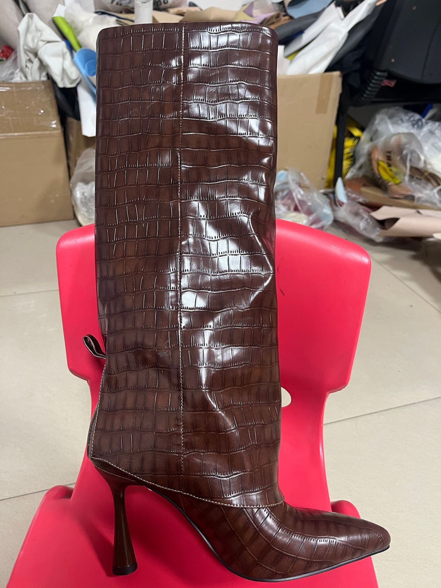 Big Tube Circumference Pointed Toe Women's Stiletto Heel Boots